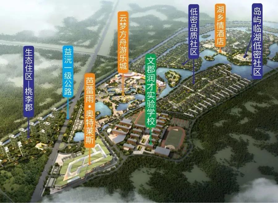 The project of Yunmeng Ark Industrial New City covers a total area of about 2500 mu, with a total construction area of about 800,000 square meters. The new plan is to fully respect the original natural landscape texture, and fully follow the design concept that lucid waters and lush mountains are invaluable assets, and form five functional blocks, namely, health and science and education group, health and vacation group, cultural tourism and leisure group, characteristic business group, and livable waterfront group under the original functional planning of the resort, and arrange vertically from south to north in a group style, including business and trade services, entertainment and leisure, scientific and technological innovation education, ecological living, tourism and vacation, life services, cultural creativity, health preservation, sightseeing and other supporting facilities, so as to build the whole industrial chain of healthy town. Relying on the profound historical and cultural heritage of Yiyang, Yunmeng Ark International Health Resort injects characteristic cultural genes, takes tourism vacation and spa health as the core, integrates commerce, education, entertainment, health, sports and residence, to create a poetic international cultural tourism and health resort.