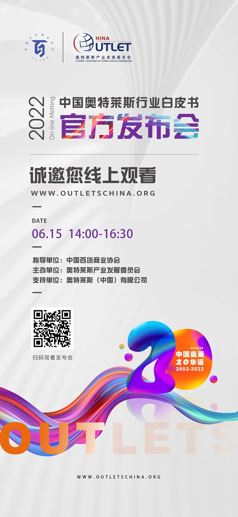 6月15日14:00,點擊奧特萊斯產業(yè)發(fā)展委員會官方網站(http://www.outletschina.org),《2022年中國奧特萊斯行業(yè)白皮書》線上發(fā)布會直播間誠邀您的觀看。