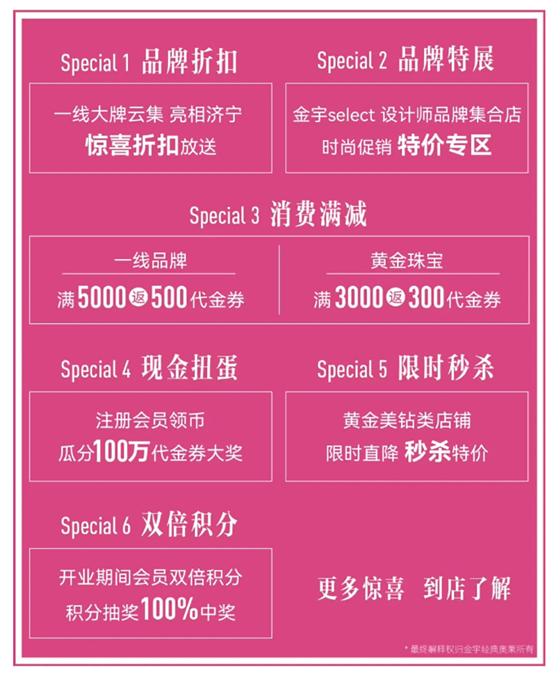 隨著金宇經(jīng)典奧萊的開(kāi)業(yè),濟(jì)寧國(guó)際生活節(jié)正式拉開(kāi)序幕。以回饋濟(jì)寧人為目的,制造濟(jì)寧人自己的時(shí)尚地盤,4.29-5.30盛惠不止狂歡不停,覆蓋五一黃金周,推出大量?jī)?yōu)惠活動(dòng),時(shí)尚秀場(chǎng)、live演出、驚喜折扣、雙倍積分、現(xiàn)金扭蛋等,回饋廣大市民朋友!