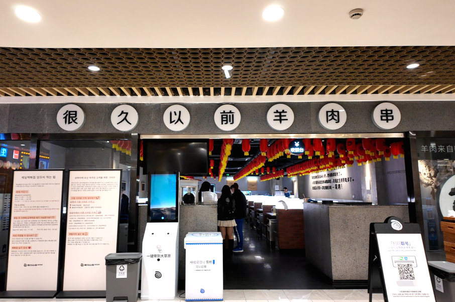 值得一提的是,在國(guó)家開放免簽政策,韓國(guó)旅客接踵而至,其統(tǒng)一的打卡模式直接帶火了“很久以前羊肉串”,尚未到正式的用餐時(shí)間,該門店前已開始排隊(duì),其中大部分等位人員為韓國(guó)游客。他們除了可以在店員的輔助下使用烤爐現(xiàn)烤現(xiàn)吃,還將門店附贈(zèng)的“冰涼貼”作為了打卡的必備項(xiàng)目。