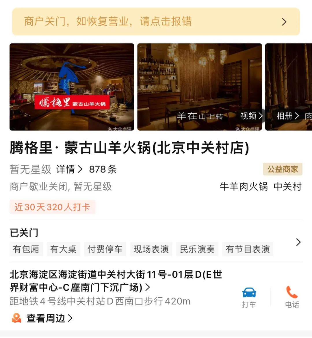據(jù)大眾點(diǎn)評最新信息顯示,西貝餐飲集團(tuán)在北京中關(guān)村高調(diào)推出的子品牌“騰格里蒙古山羊火鍋”全國首店已歇業(yè)關(guān)閉。這家曾以現(xiàn)熬羊骨湯、內(nèi)蒙古二狼山白絨山羊肉為主打賣點(diǎn),開業(yè)首月即登頂區(qū)域火鍋熱門榜的餐廳,在運(yùn)營不足半年黯然退場。