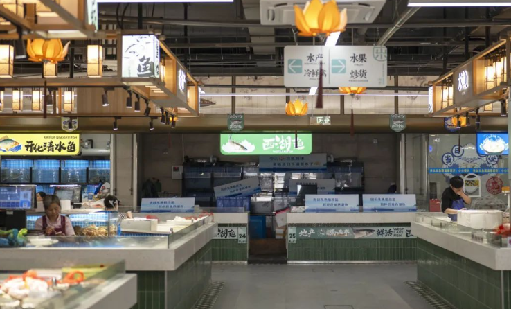 改造后的福明菜場對空間進(jìn)行了重新規(guī)劃,設(shè)置了蔬菜、水果、肉類、海鮮、禽蛋、豆制品、熟食等不同的功能區(qū)域。除了傳統(tǒng)的農(nóng)產(chǎn)品攤位外,福明菜場還引入了許多特色業(yè)態(tài)。如增加了鮮花店、烘焙坊、小吃店、便利店等,滿足了消費(fèi)者在購物過程中的多樣化需求。同時(shí),還設(shè)置了一些品牌農(nóng)產(chǎn)品專賣店,提供高品質(zhì)的特色農(nóng)產(chǎn)品,提升了菜場的檔次。