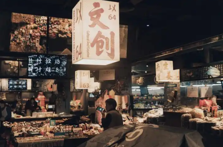 其中,信義巷子主要匯集特色小鋪,一樓布滿如陜西特產(chǎn)、小磨香油、新鮮肉鋪等門面,二樓則由咖啡館、美甲店等小店組成。每家店鋪頂部都有懸掛老菜場統(tǒng)一設(shè)計(jì)的小旗幟,既和諧統(tǒng)一又各含特色;有戲主題板塊主要以脫口秀,劇本殺,婚禮,攝影及文創(chuàng)手工等工作室等業(yè)態(tài)為主,以“有戲”為名也代表著希望,象征著新銳市井文化的希望;悅夜板塊,主要匯集酒吧、民宿等多種休閑元素。尋味板塊,則提供少燒烤、韓料、特色小吃等餐飲。